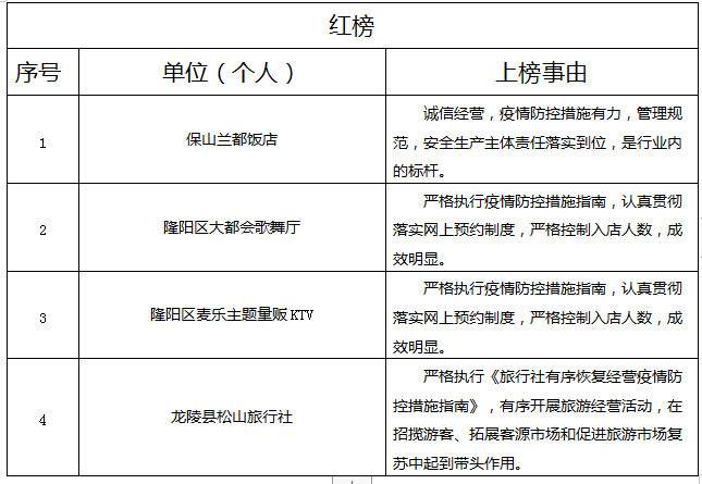 保山市文化和旅游局關于發(fā)布文化和旅游“紅黑榜”的通告(第十一期)